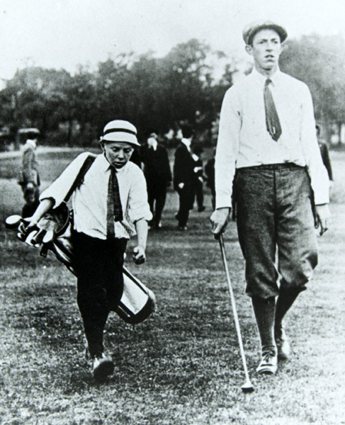 Francis Ouimet and Eddie Lowery, his 10-year-old caddie, during the 1913 U.S. Open, when Ouimet defeated the Englishmen Harry Vardon and Ted Ray in a historic playoff and became the first amateur to win the Open. (USGA Museum)