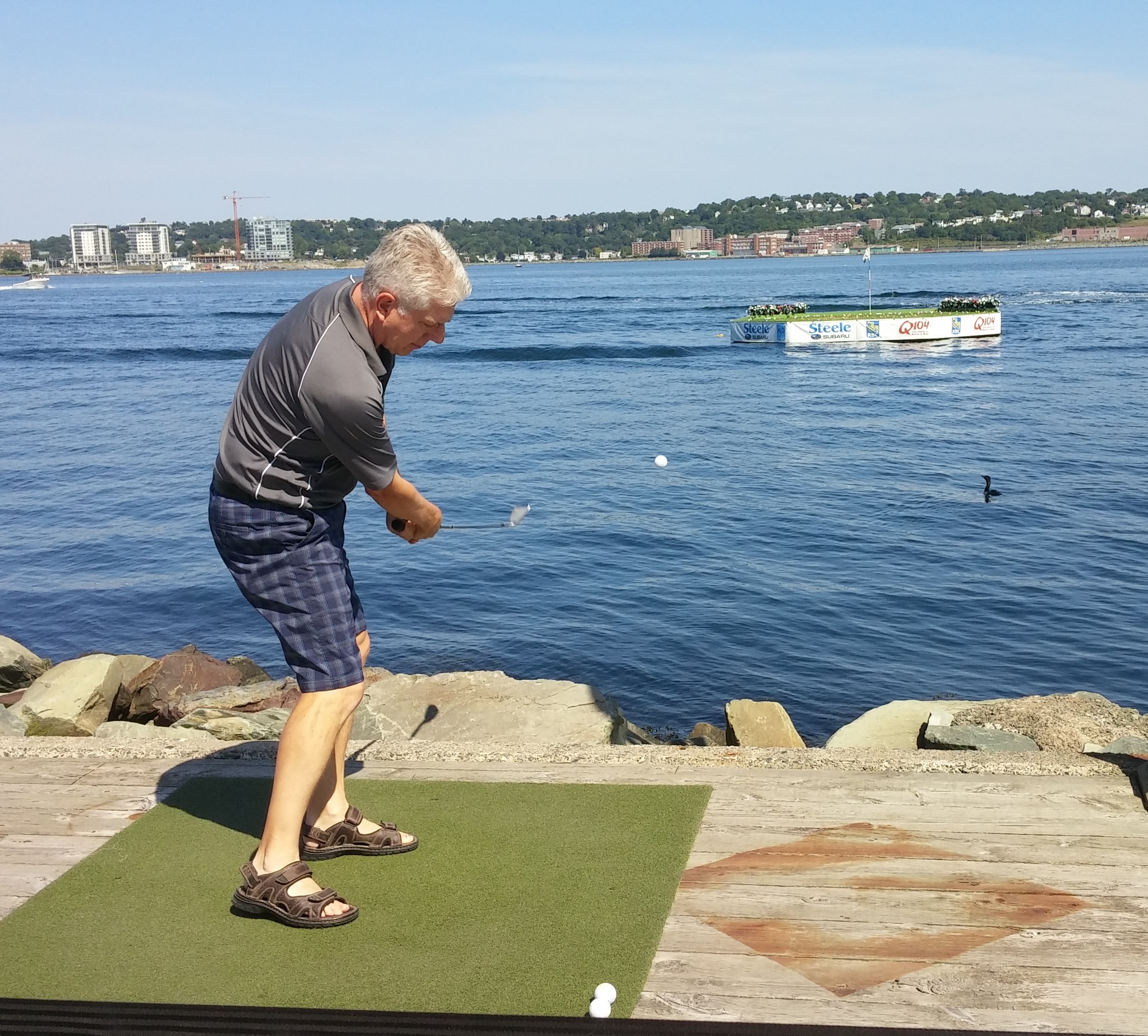Recently while visiting Halifax, Nova Scotia, my darling wife and I took a walk on the Halifax harbour front. It is a walk we thoroughly enjoy and make a point of trekking along the water every time we visit Halifax. During this jaunt, I spied some sort of golf pavilion and was drawn to it like a bug to light!