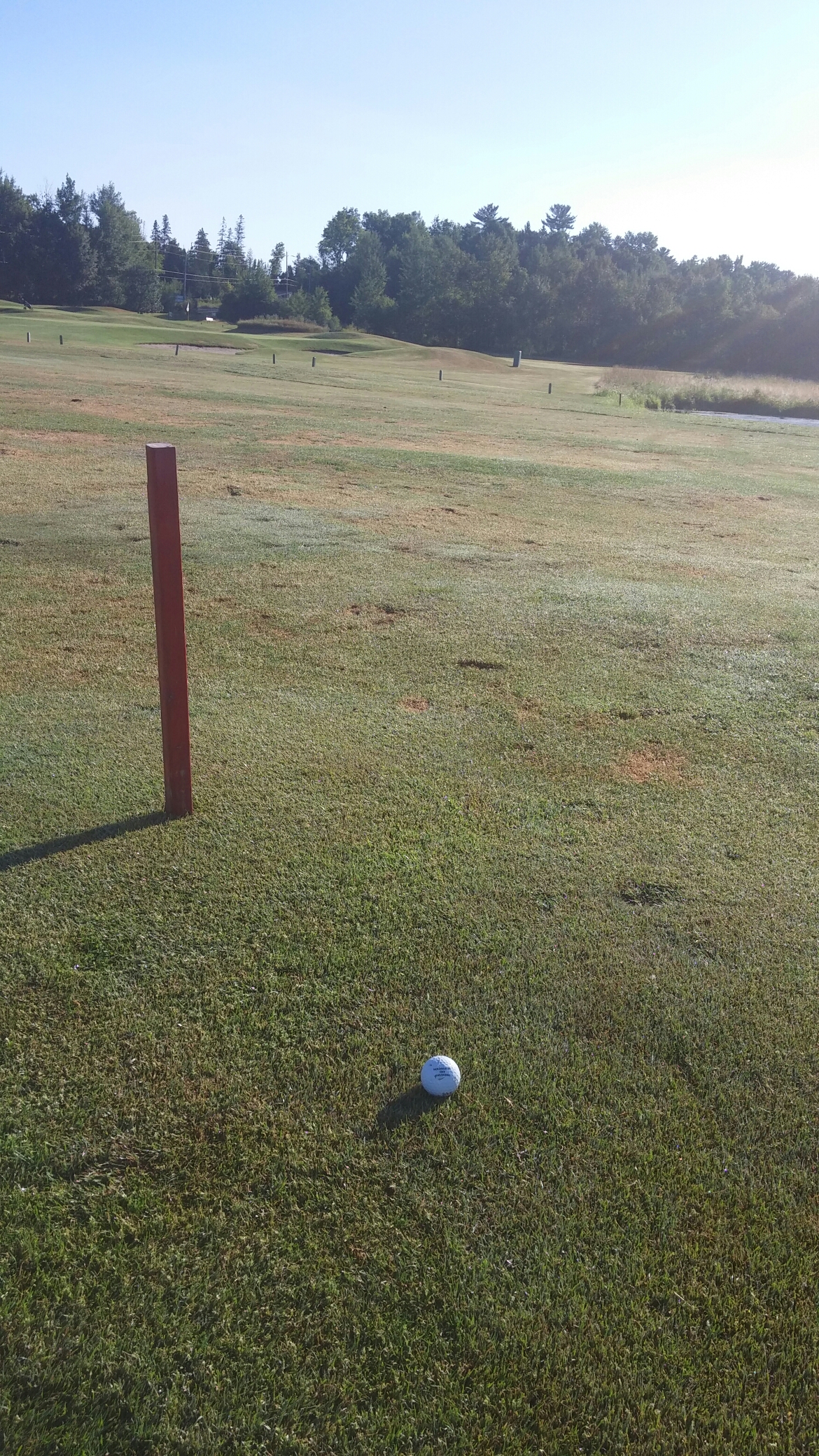 While playing yesterday, I hit my ball down the middle of the fairway. This shot worked out exactly as planned because I was aiming at the red stake (100 yard marker).