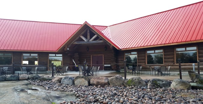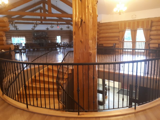 The clubhouse is massive. The first thing that caught our eye was the round stair case with a petrified log running from the bottom floor to the ceiling on the second floor. The bottom floor houses the modest sized pro shop and bathrooms. The second floor was completely open with a dining area and a bar area. It would be perfect for a wedding or large function. Anne said the building was down to the studs when they took over in 2010 and from what we saw, their labor of love sure paid off.