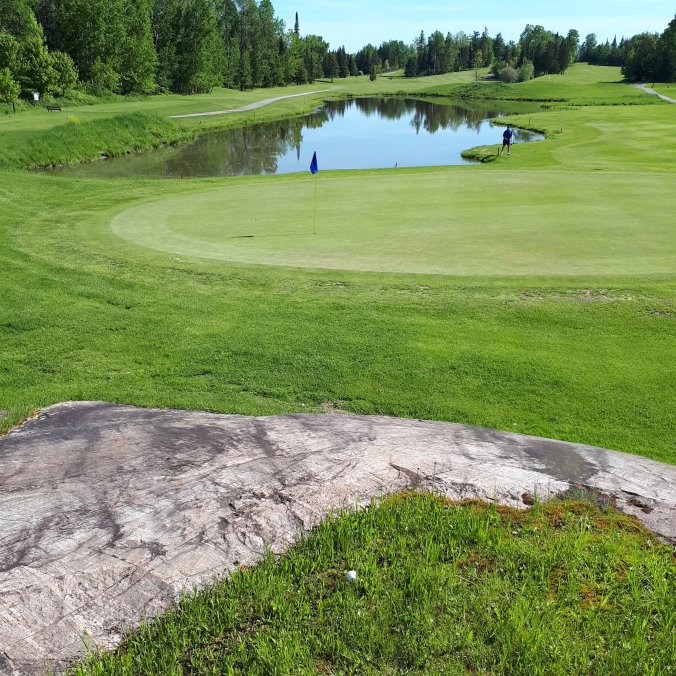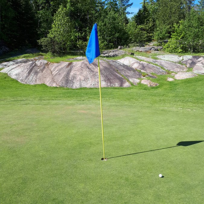 4. Then my ball kicked right and stayed on top of the rocks behind the green.
