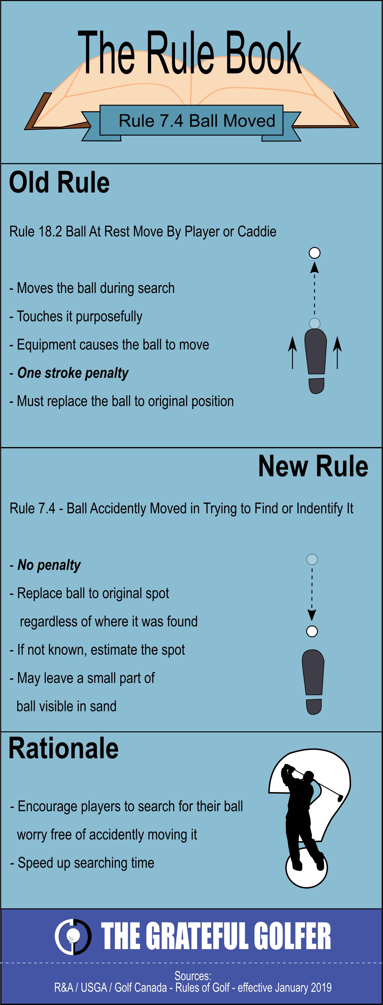 Rule 7.4 Moving Own Ball During Search December 27, 2018May 4, 2019 / The Grateful Golfer Rule 7.4 Moving ball on search infographic