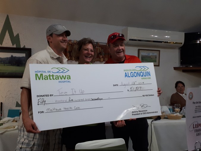 I have written several articles on this fantastic local charity golf tournament. As you are aware, I was fortunate to participate in this growing tournament and I have to say that it was first-rate! The purpose of this event was to raise monies for the Mattawa Hospital and the new Algonquin Nursing Home (being built as we speak) and to that end, the entire day was very successful. The unofficial tally for all the efforts of the organizers was over $51,000. Almost doubling the previous year’s total.